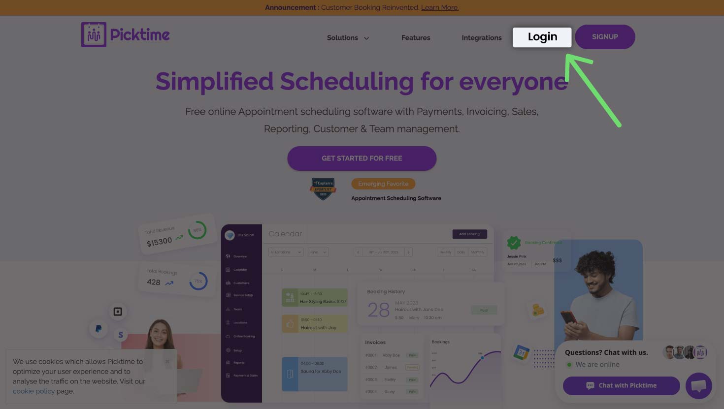 To Login with Picktime: