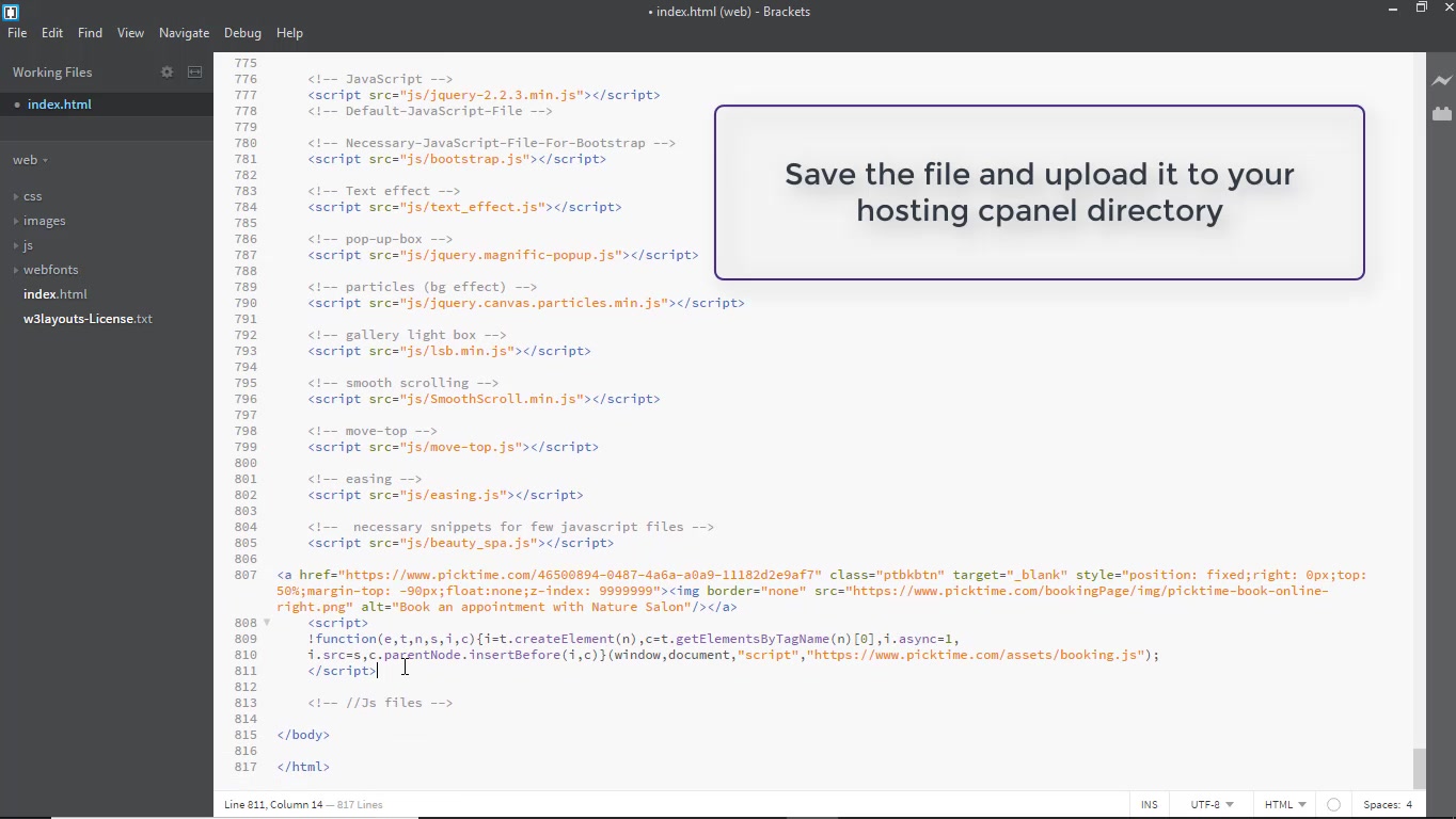 - Save the file and upload it to your hosting cpanel directory.