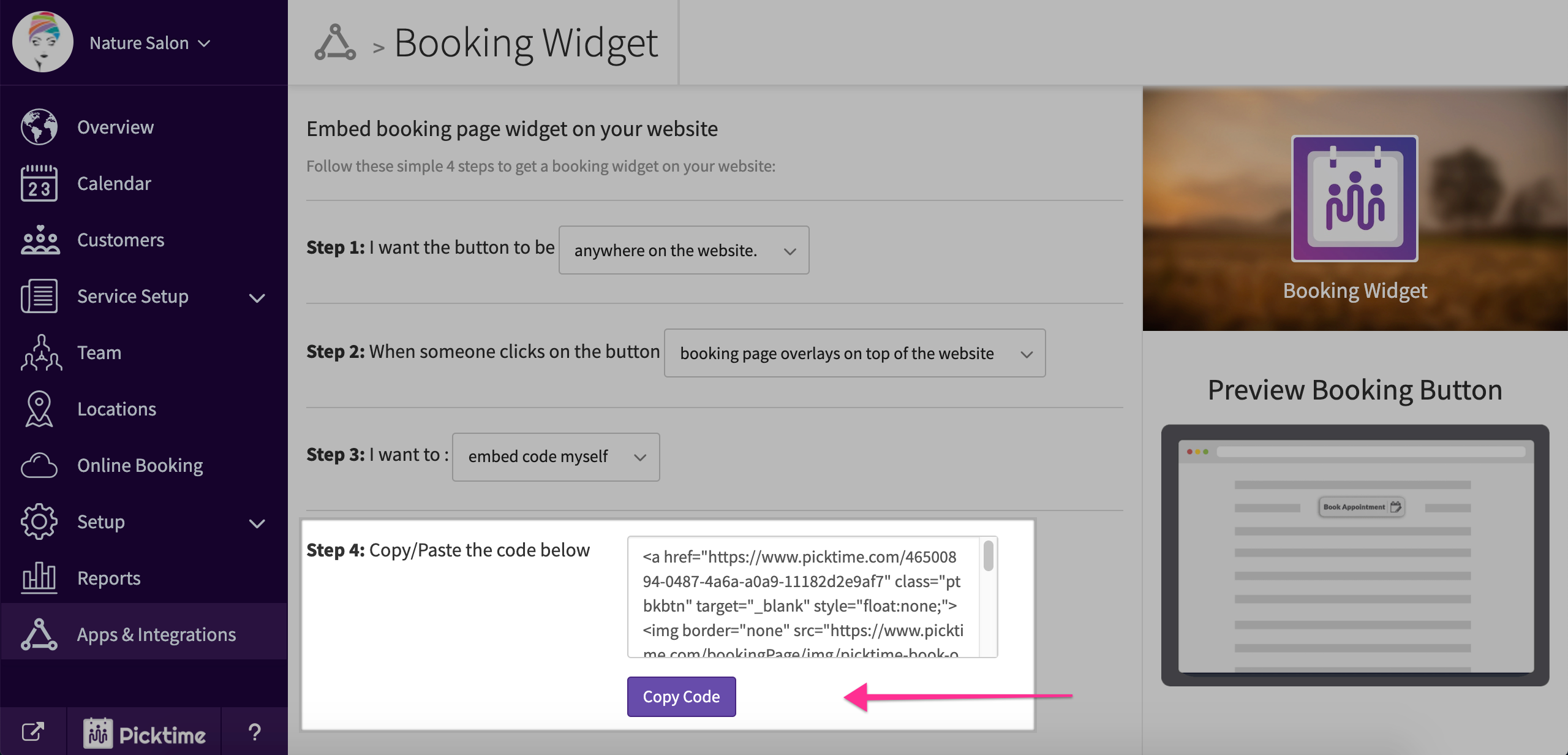 - In step 2 choose 'overlay a booking button on top of my website'