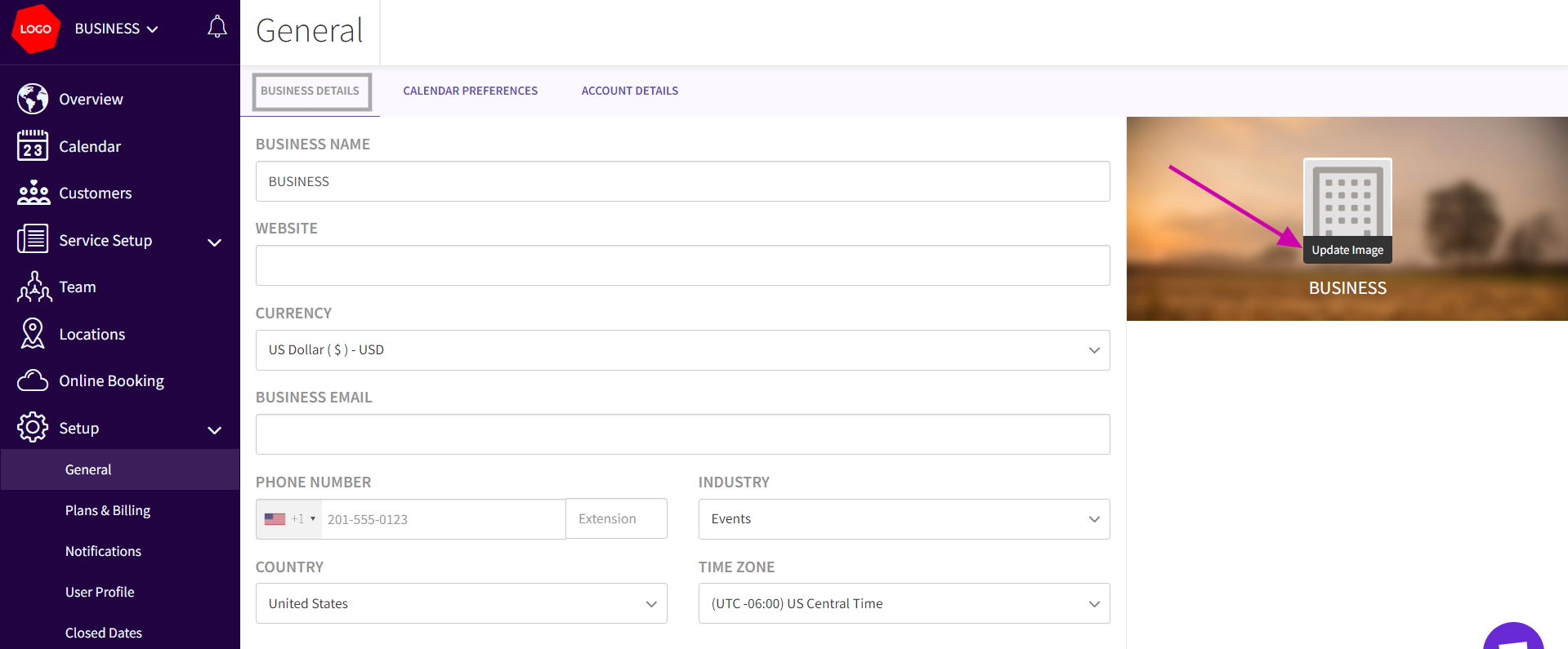- Under Business details tab on the right side and Hover over it and you will see ‘upload image’