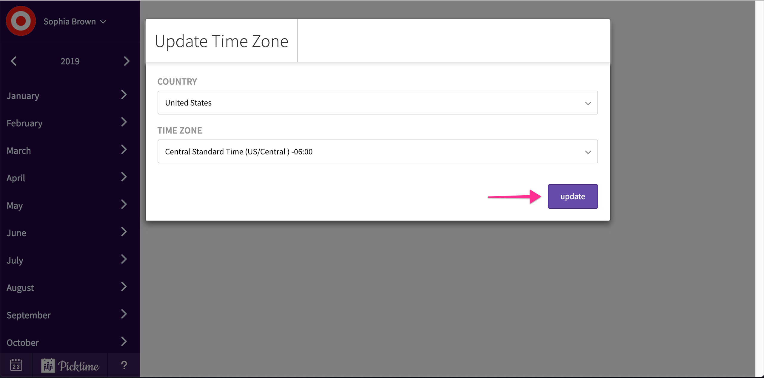 - When you click on your personal calendar for the first time, it will ask you to update your country and timezone. Click finish.