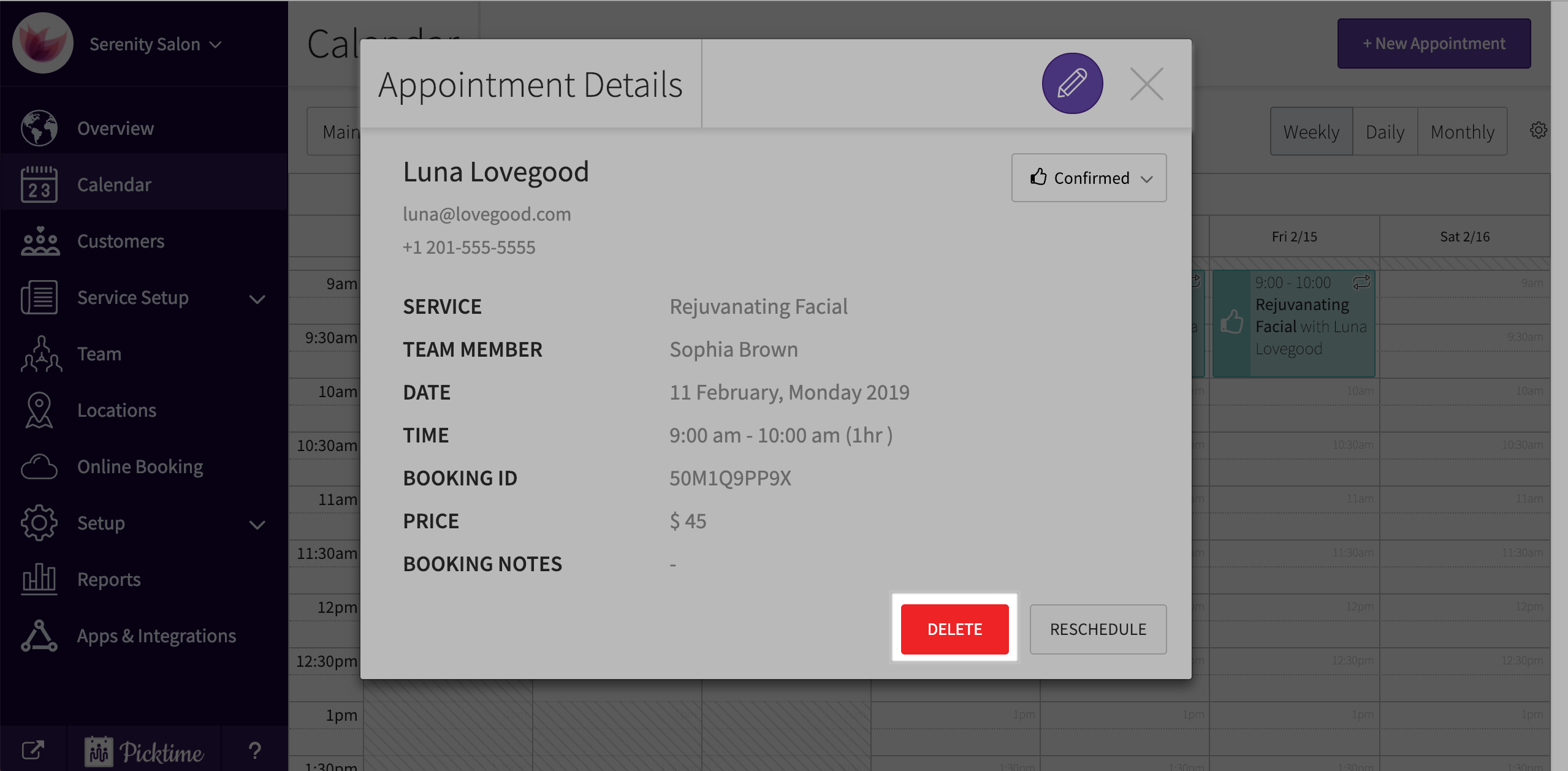 - The second option will delete the selected appointment along with the future appointments.