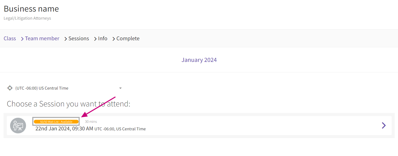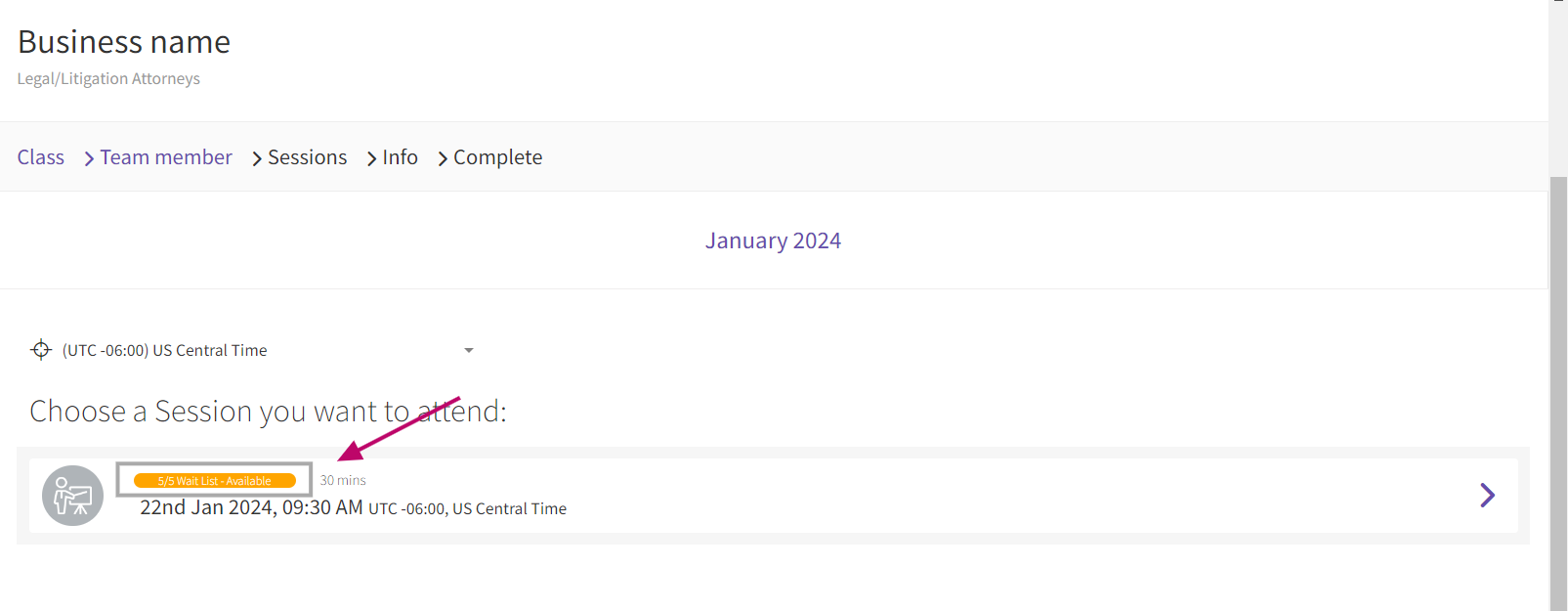 - Choose the class name for which you want to activate the Waitlist feature.