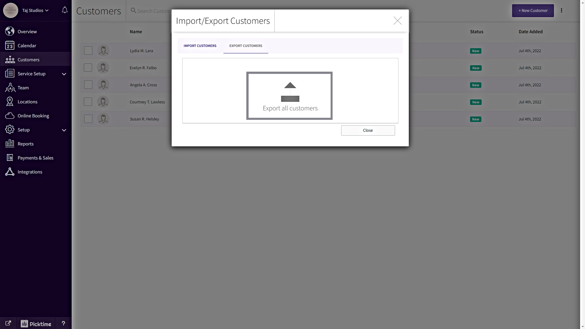 - By clicking on the export icon at the center of the Import/Export pop-up to download the customer contact list. Once you clicked the export icon, your download will start. Check the downloaded file in your default browser download folder.
