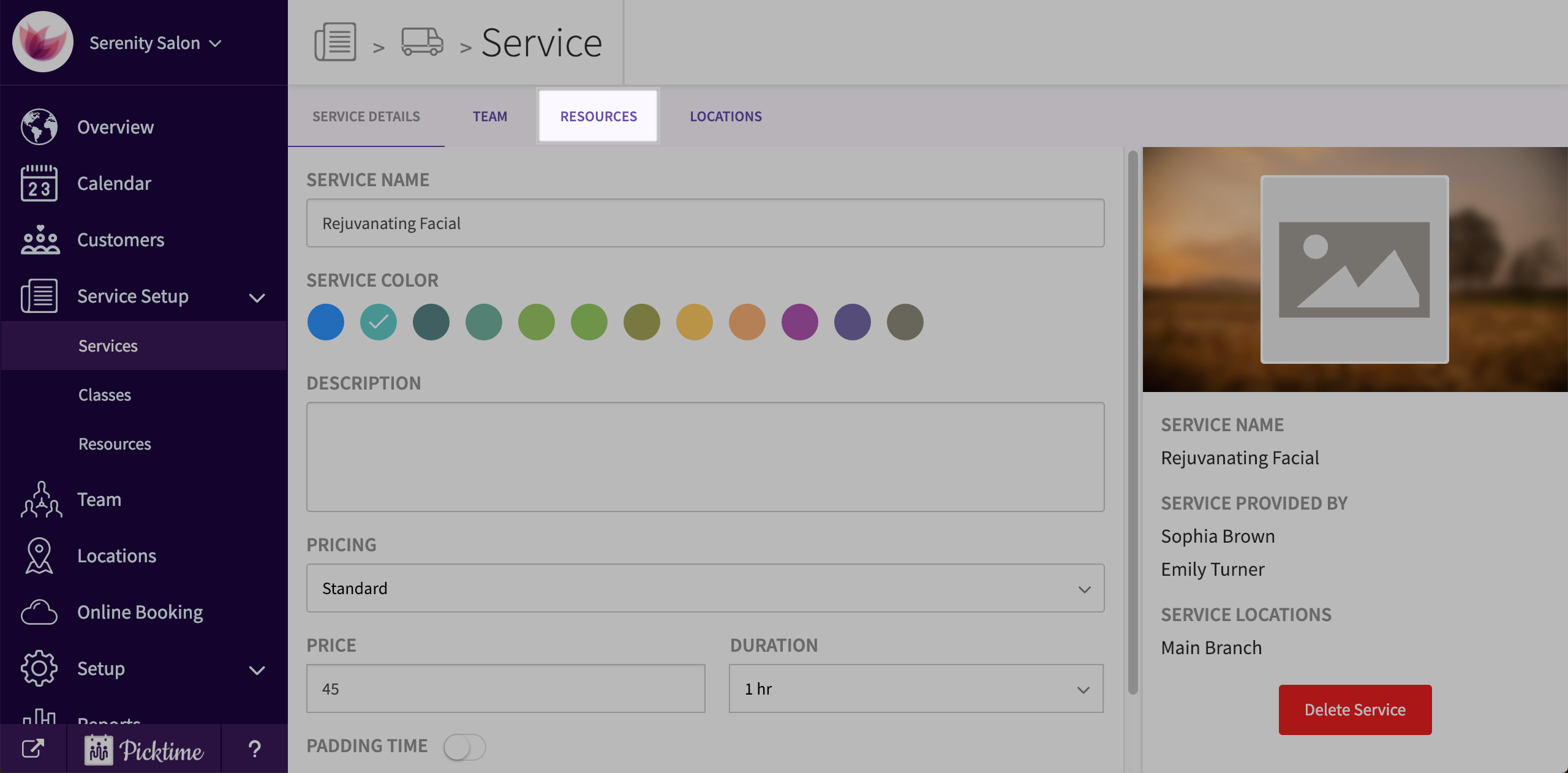 - Choose a service you want to allocate to a resource.