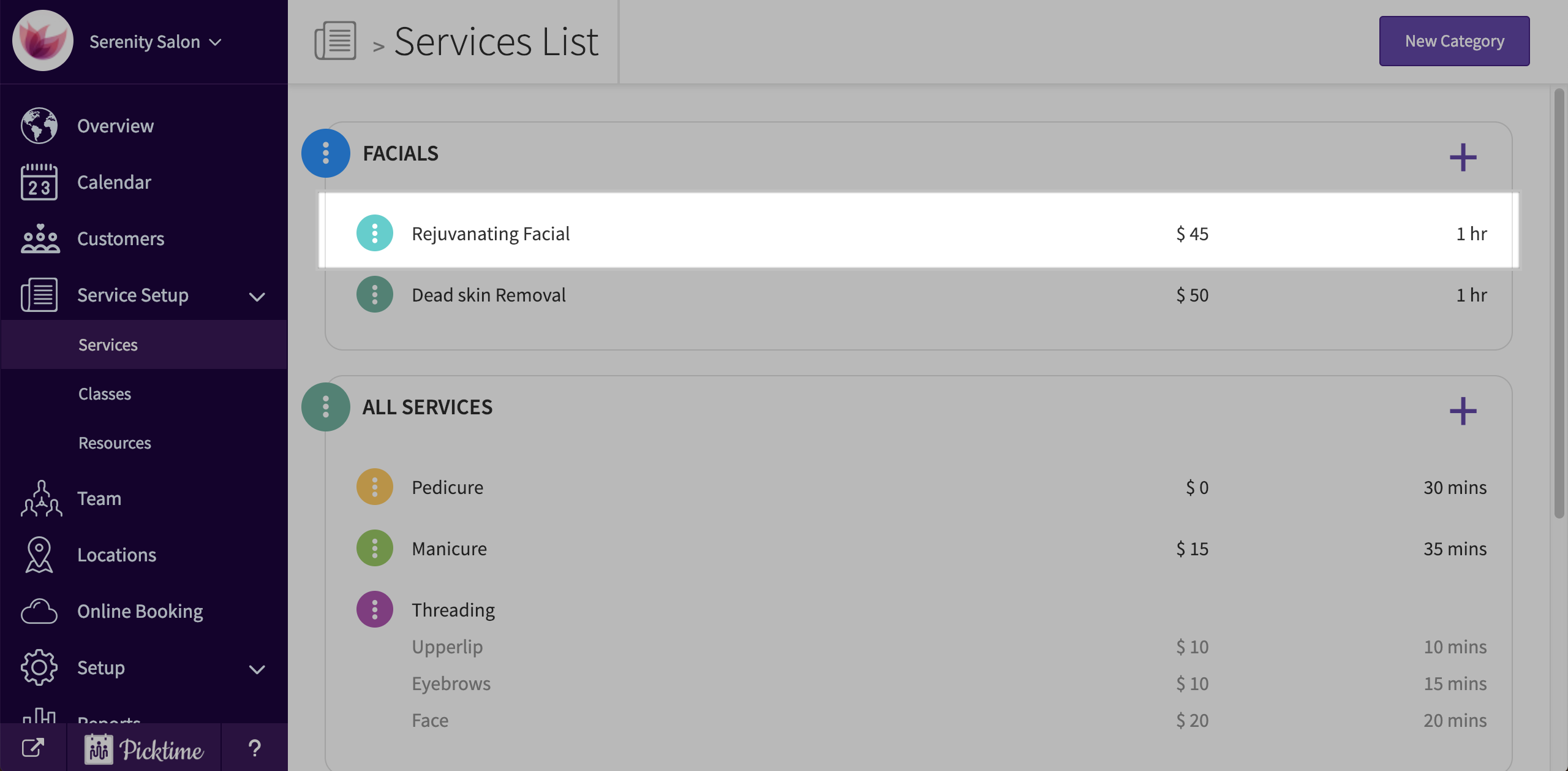 - Go to service setup and choose services.
