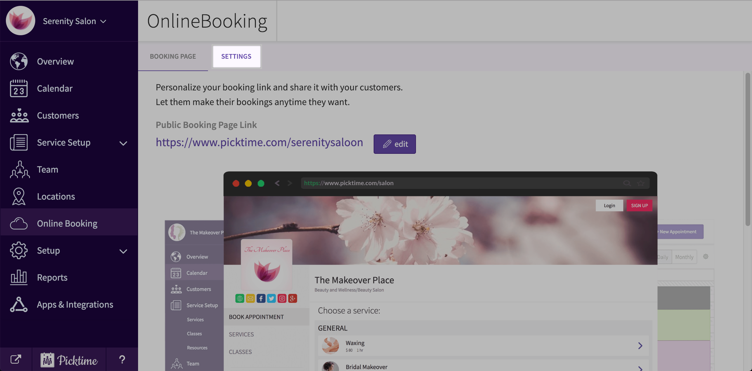 - To control what time slots you can make available online, go to settings tab.