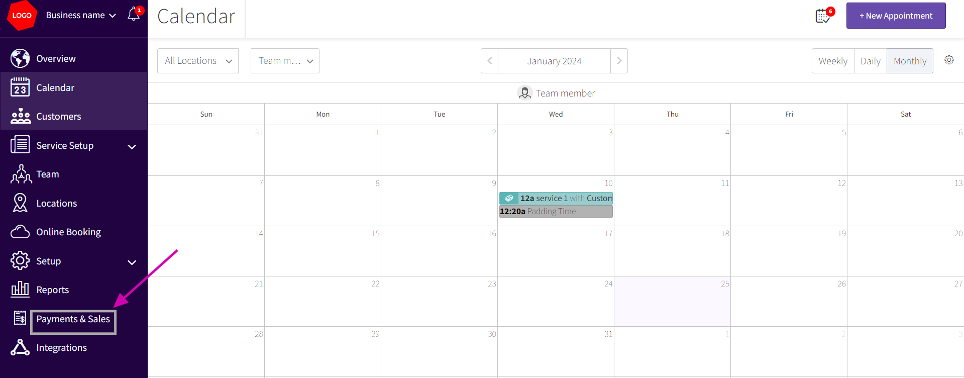 - Go to Payments and Sales
