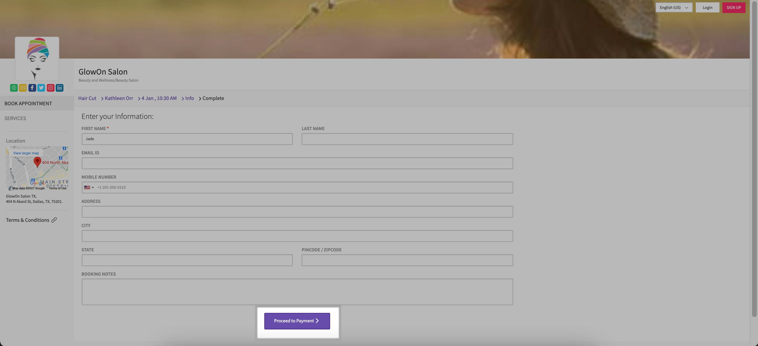 - In the appointment pop-up, you will see a Checkout option.