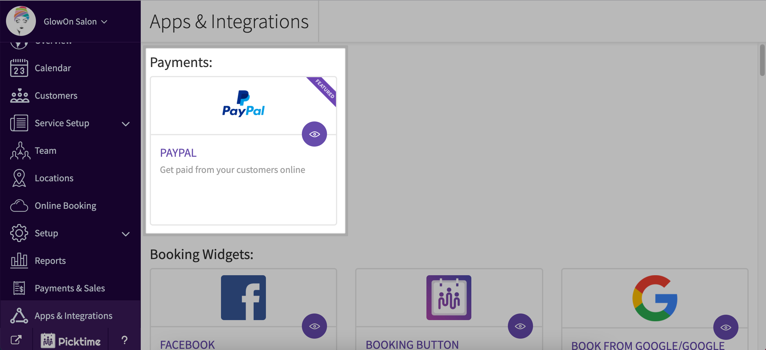 - Once the payment is made, the booking will appear on the Picktime calendar with a Paid status.