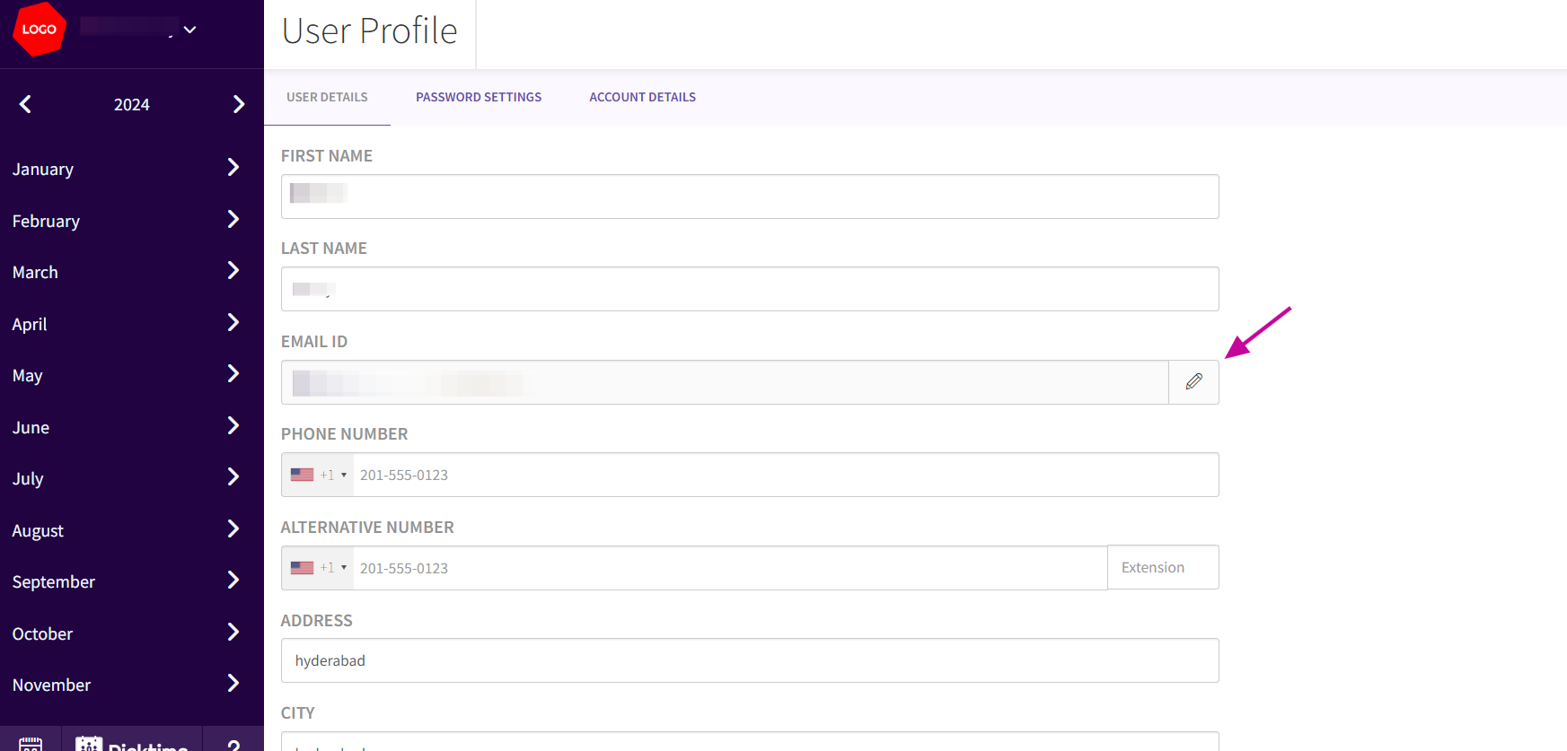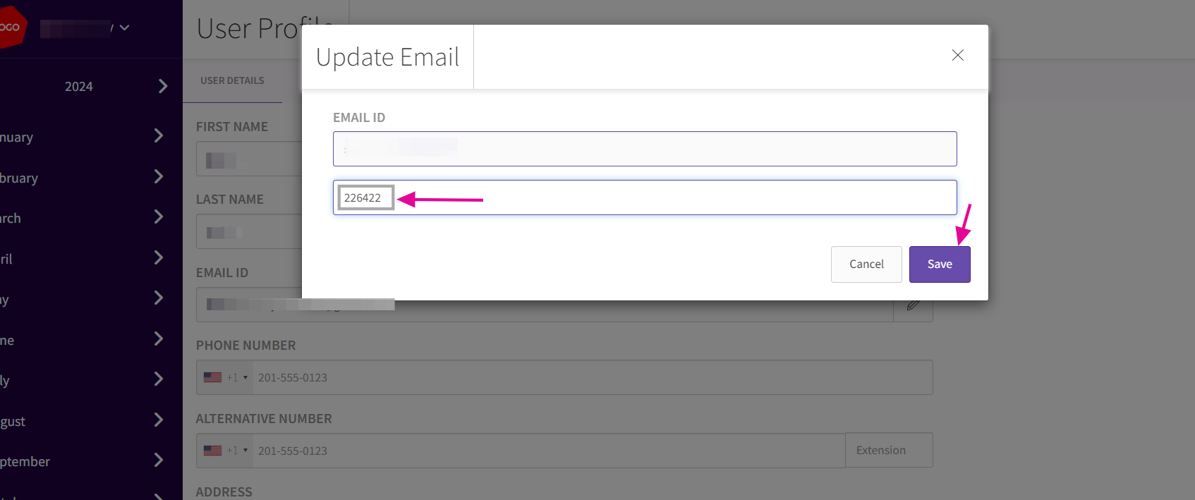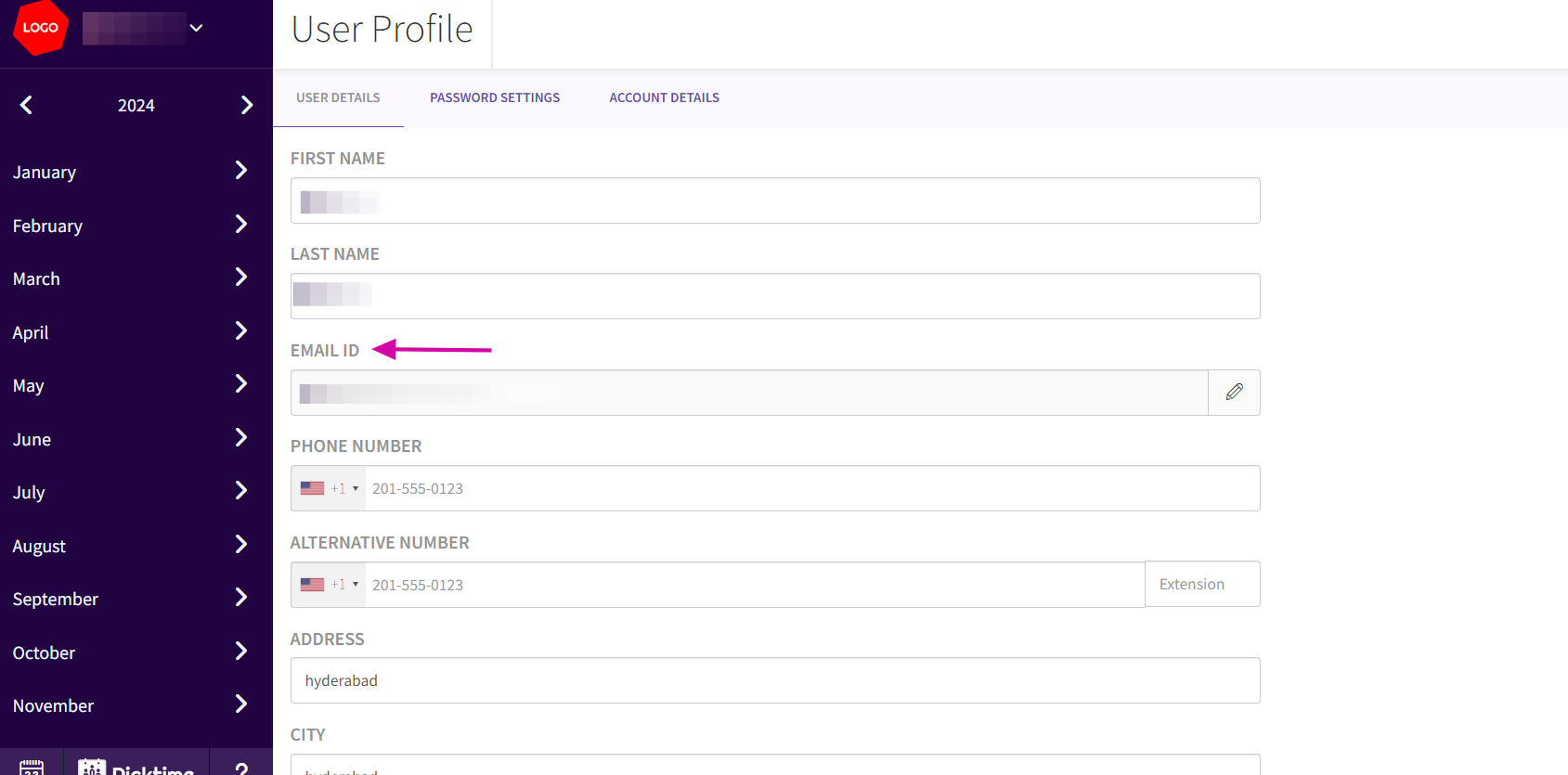 - Once in the User Profile section, identify the 'EMAIL ID' field. This is where you will enter your new email address.