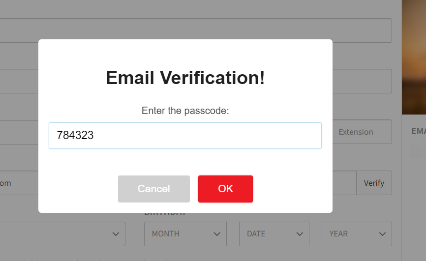 - A popup for email verification will appear. Click "Email Passcode(OTP)".