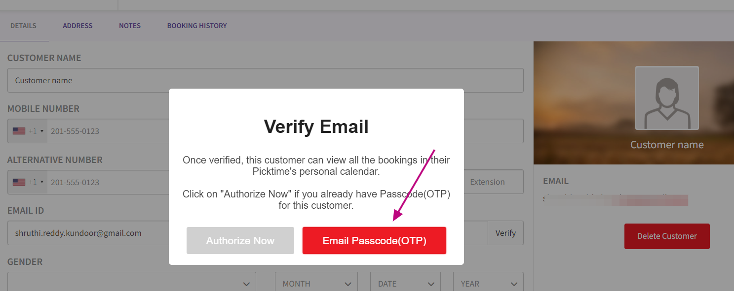 How to Verify Customer Email Addresses for Viewing Appointments in Picktime Personal Calendar