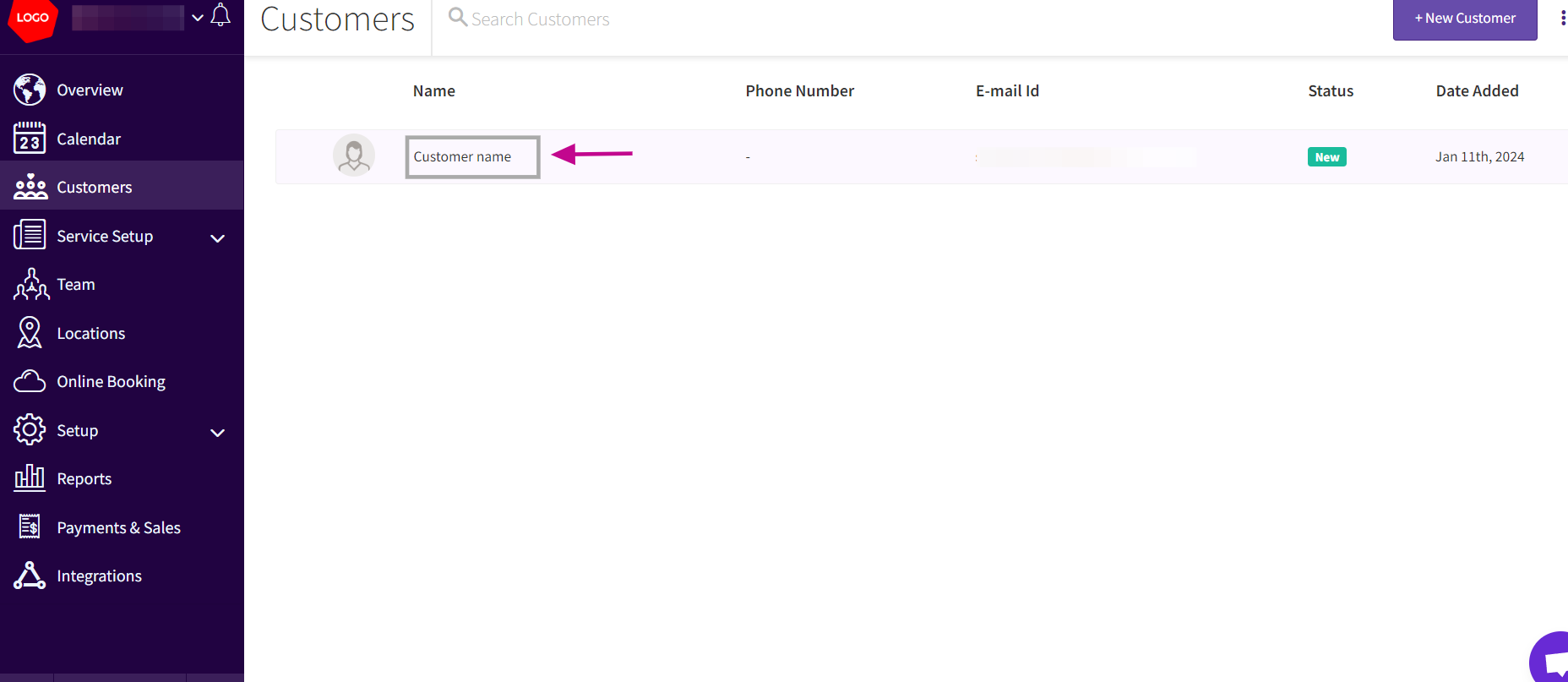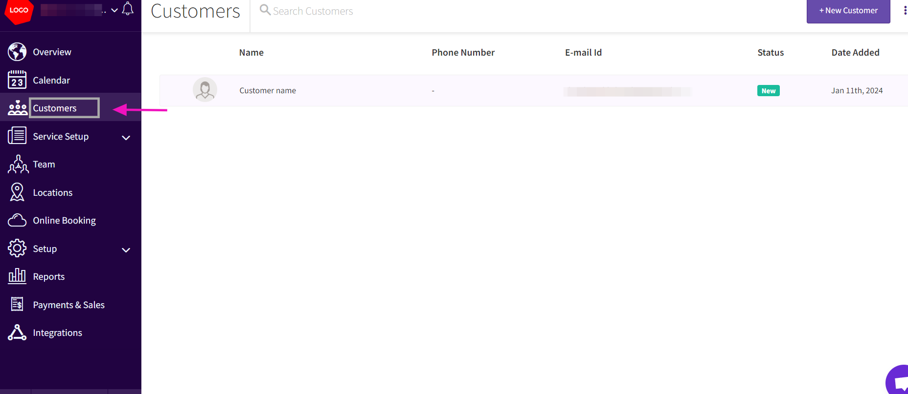 - Log in to your admin account on Picktime and navigate to the "Customers" tab.